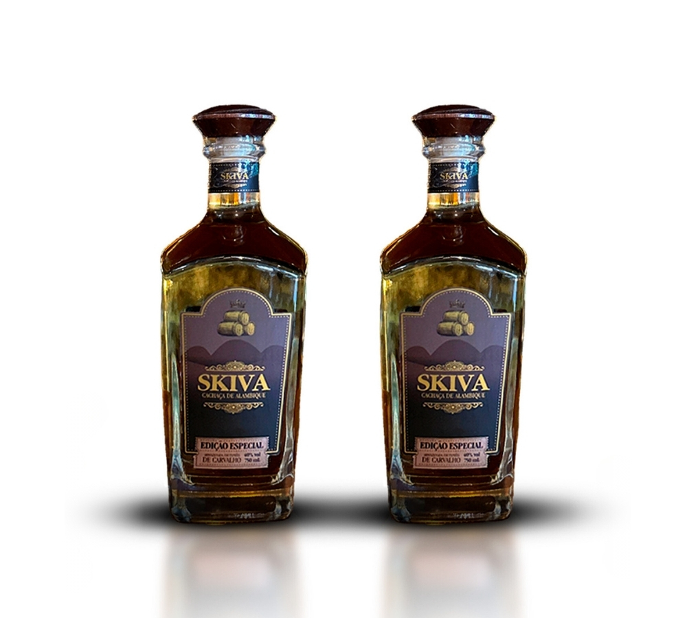 Conteúdo: 2 garrafas de Cachaça Skiva Carvalho (750ml cada)